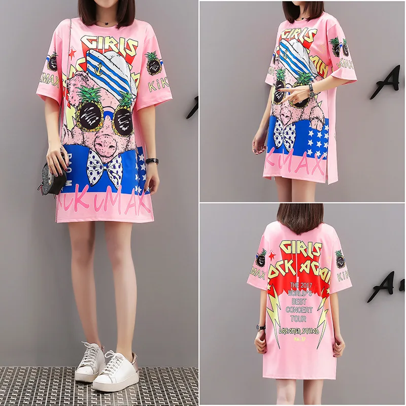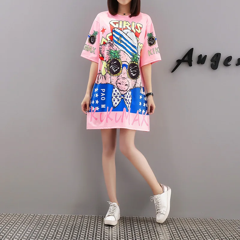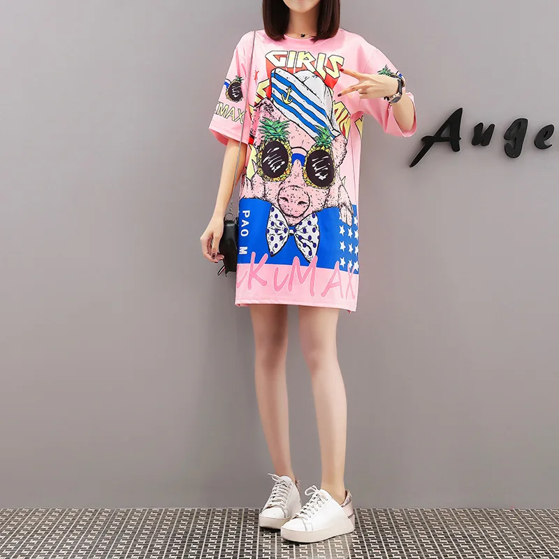 Photo Shoot Ozhouzhan 2019 Spring Summer Thailand Popular Brand Cartoon Printed Short Sleeve Loose-