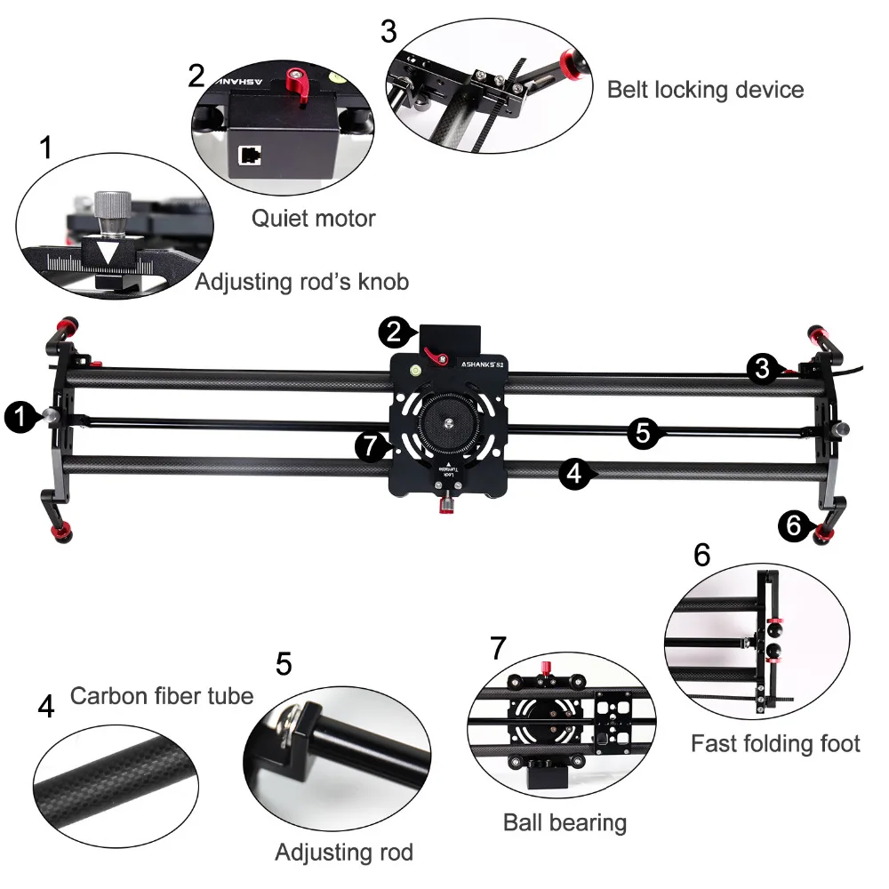 ASHANKS S2 Silent Stepper Motor Motorized Timelapse Carbon Fiber Slider for Electric Control Follow