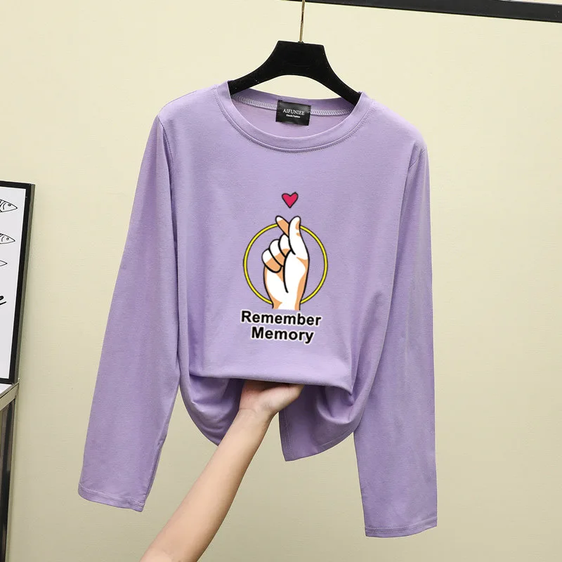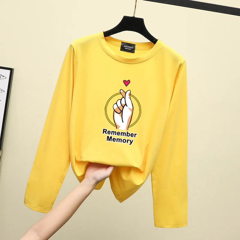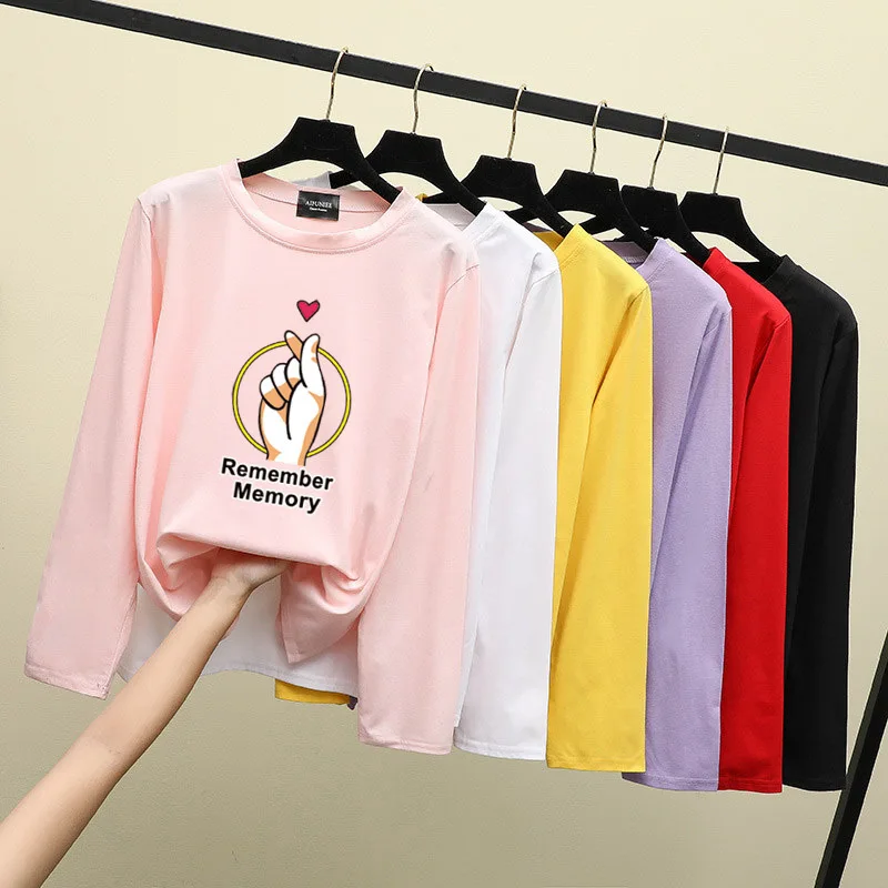 Long Sleeve Printed T-shirt Women's Photo Shoot 2019 Autumn Korean-style Loose-Fit Versatile Hong K